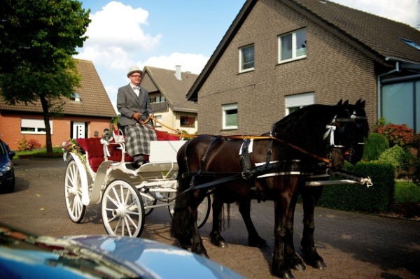 Herzlich Willkommen auf unseren Internet-Seiten ! Mit der Kutsche zur Hochzeit Auch der ein oder andere Hochzeitsantrag begann so schon einmal mit einer Fahrt in einer unserer schönen Kutschen. Wenn es dann soweit ist, steht die Hochzeitskutsche vor der Kirche bereit.